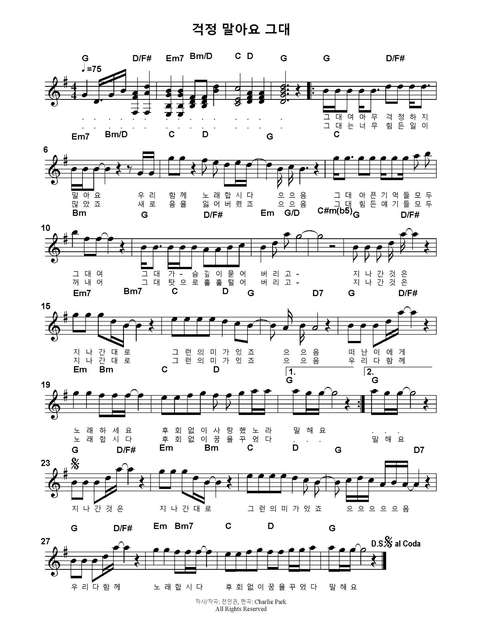 | 전인권 - 걱정말아요 그대 (쉬운 버전 - C코드) - 기타 악보 (0) | 2020.07.06 |
