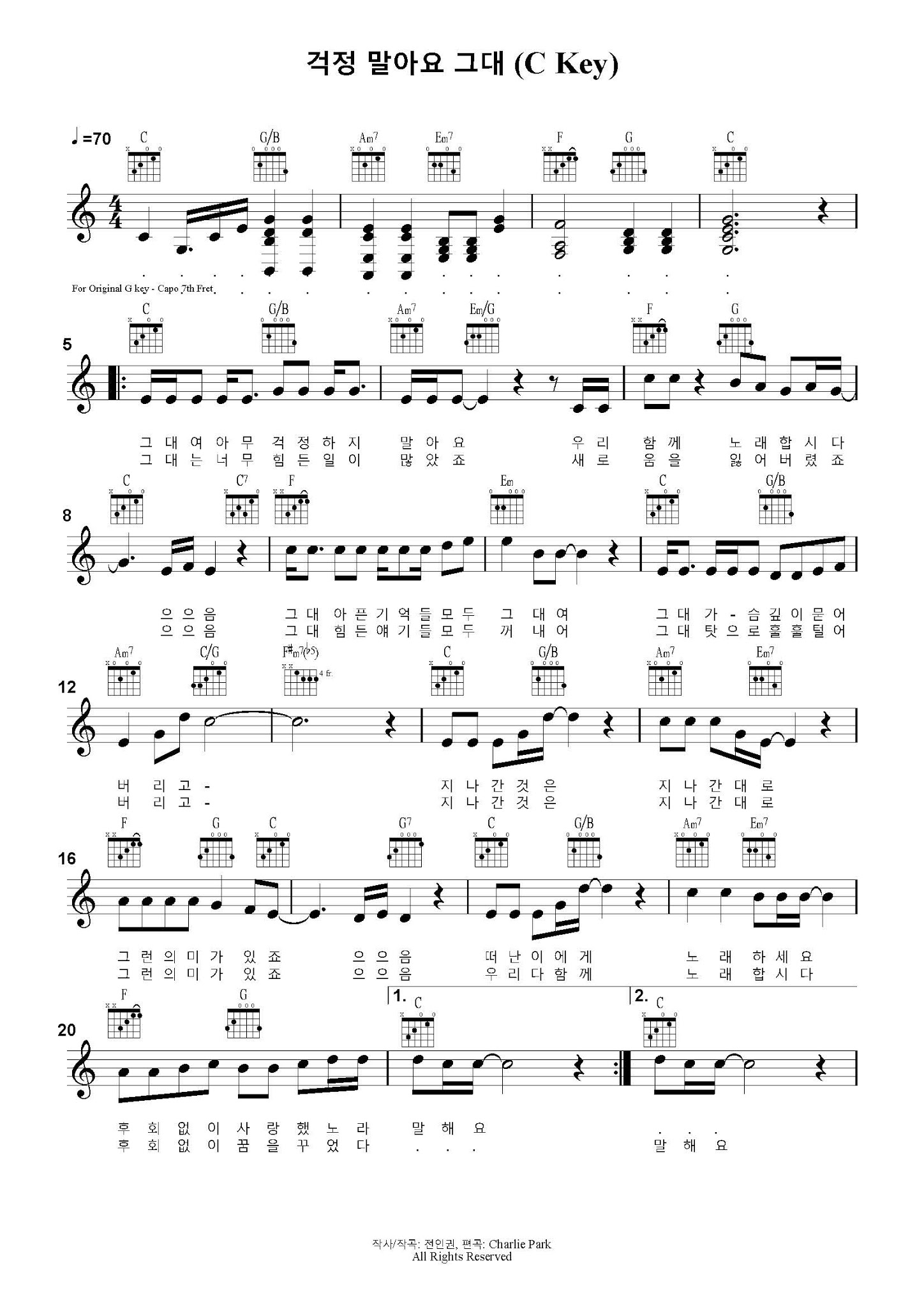 | 전인권 - 걱정말아요 그대 (원곡 - G코드) - 기타 악보 (2) | 2020.07.06 |