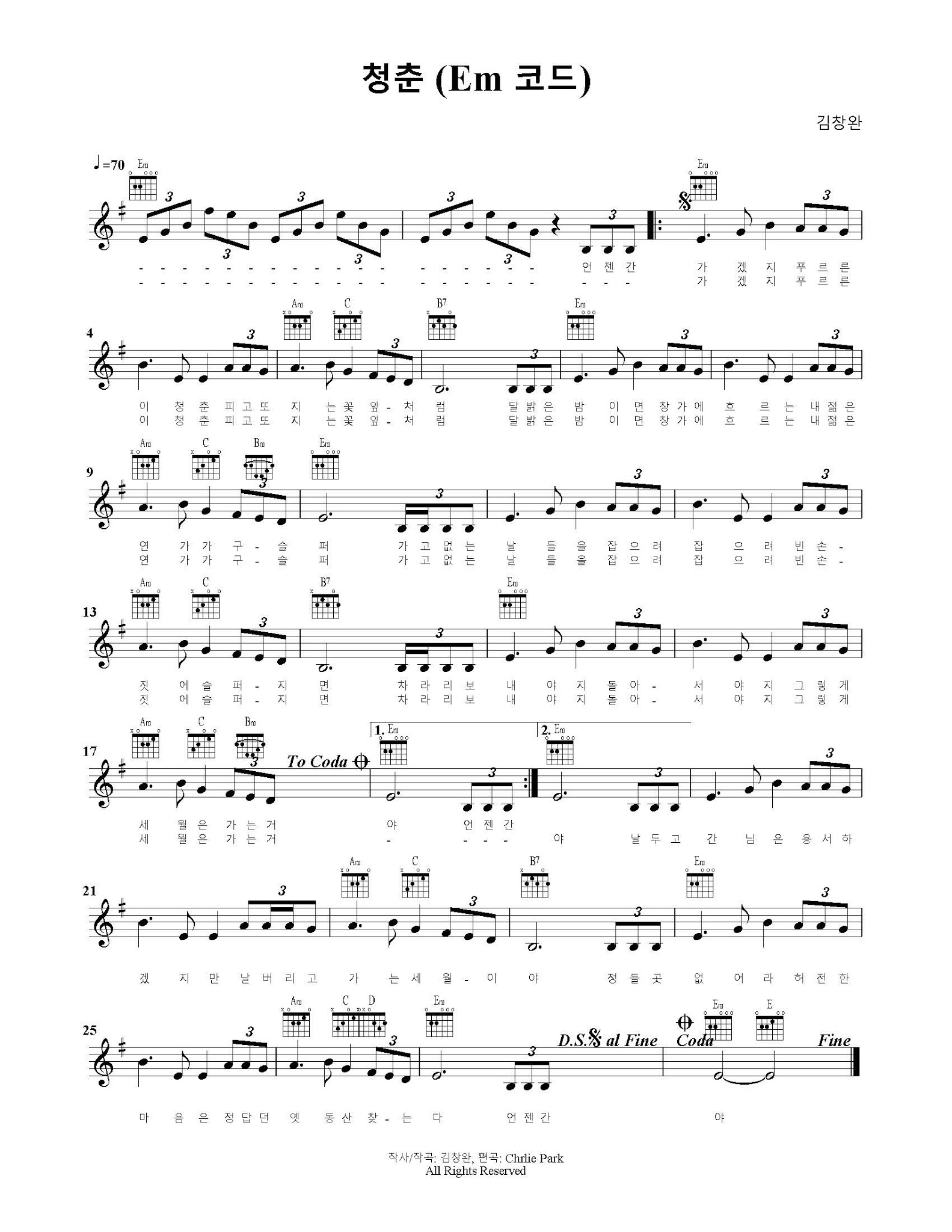 | 김창완 (산울림) - 내게 사랑은 너무 써 (원곡 버전 - C코드) - 기타 악보 (0) | 2020.07.09 |