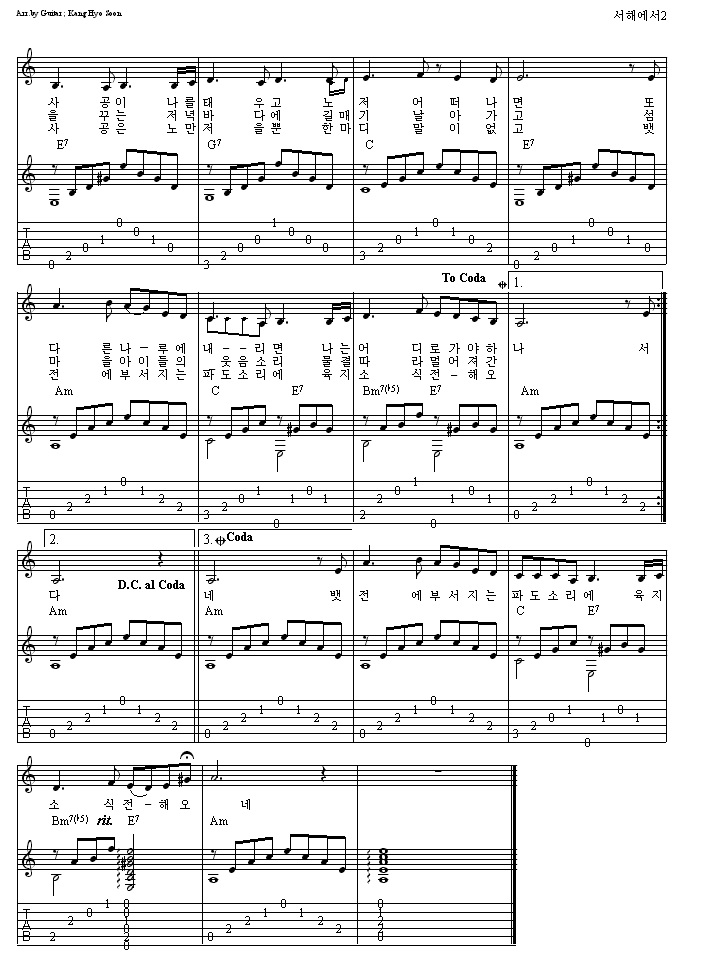 | 김창완 (산울림) - 내게 사랑은 너무 써 (원곡 버전 - C코드) - 기타 악보 (0) | 2020.07.09 |